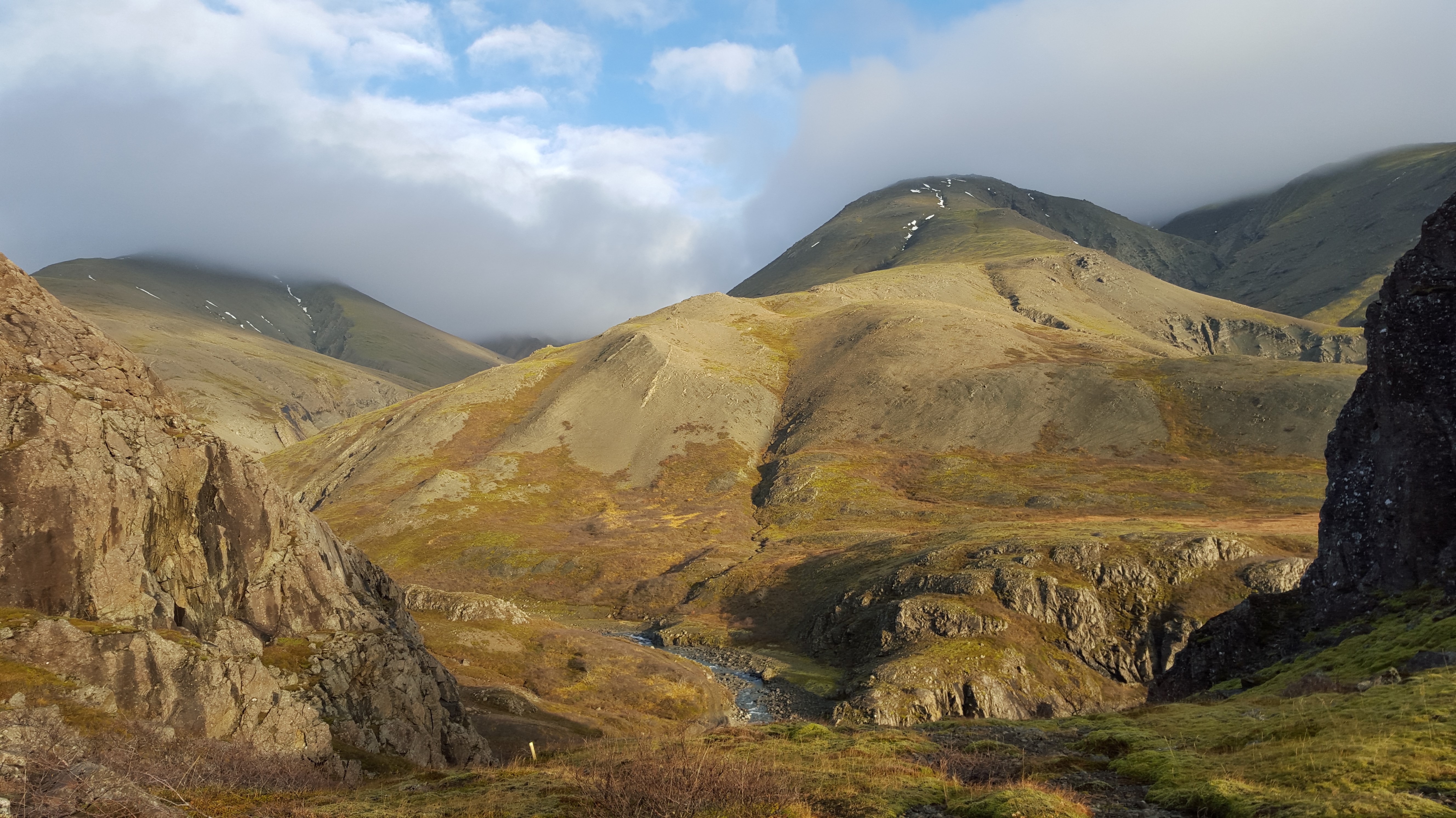 Nach dem Gepäckband wurde der Duty-free Shop gestürmt (Alkohol!!) und der Geldautomat geplündert und dann ging es mit dem Mietwagen weiter in den Osten der Insel, um genauer zu sein nach Hörgsland (http://horgsland.is/). Wir hatten dort für 2 Nächte entzückende Hütten in traumhafter Landschaft.
