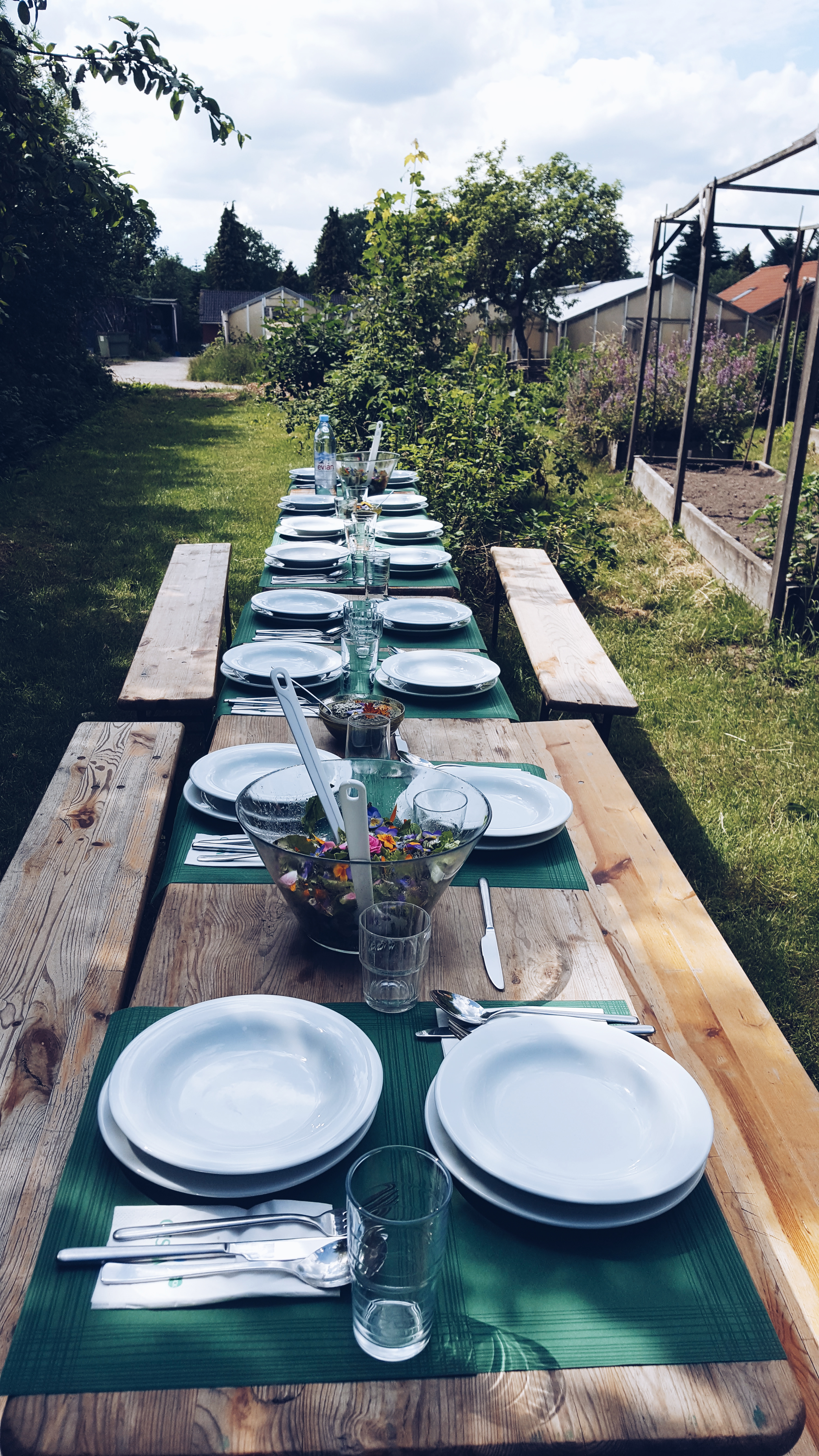 Da das Wetter so wunderbar war konnten wir schön draußen essen. Dafür wurden einfach ein paar Tische und Bänke im grünen Idyll aufgestellt.
