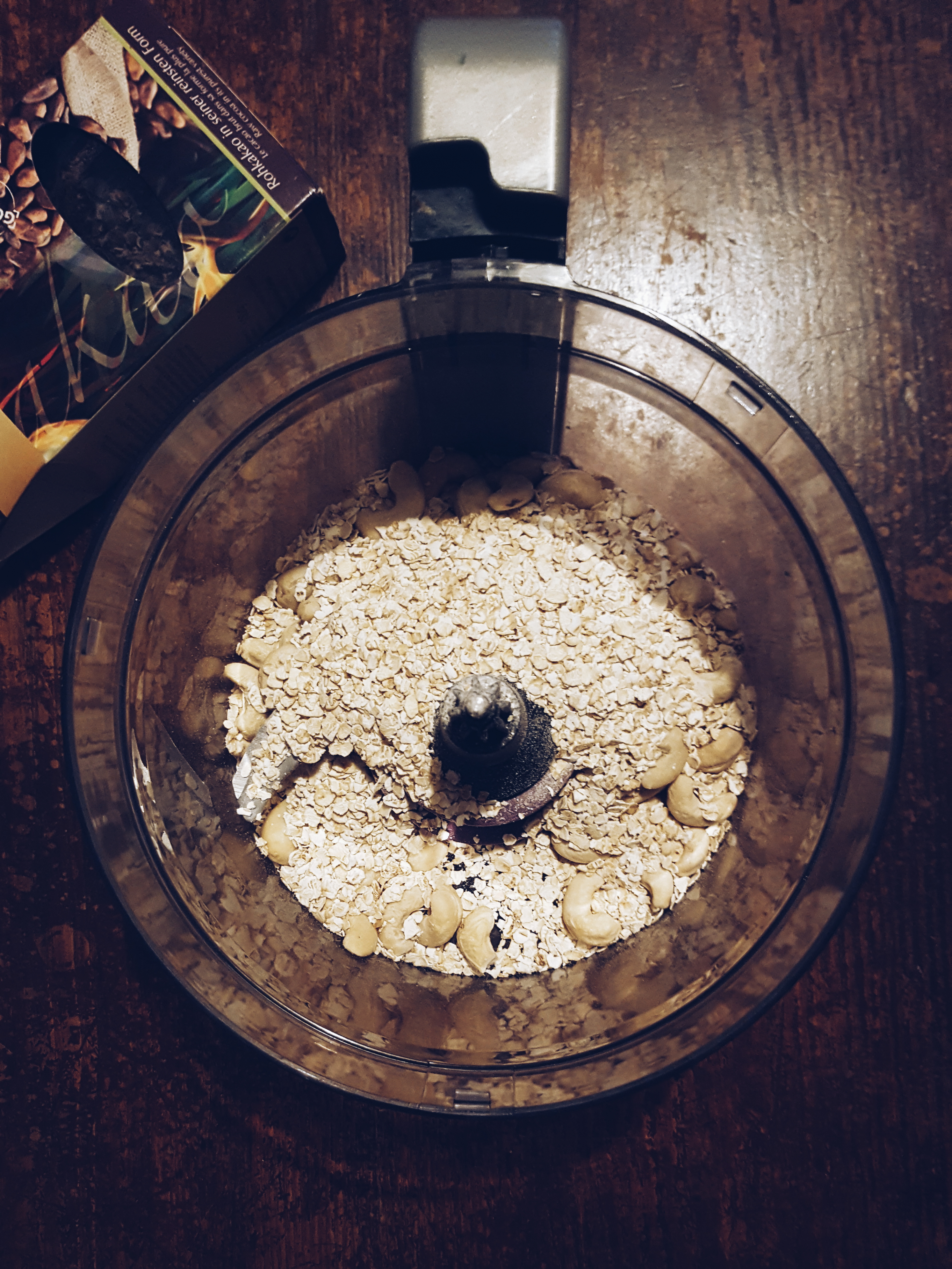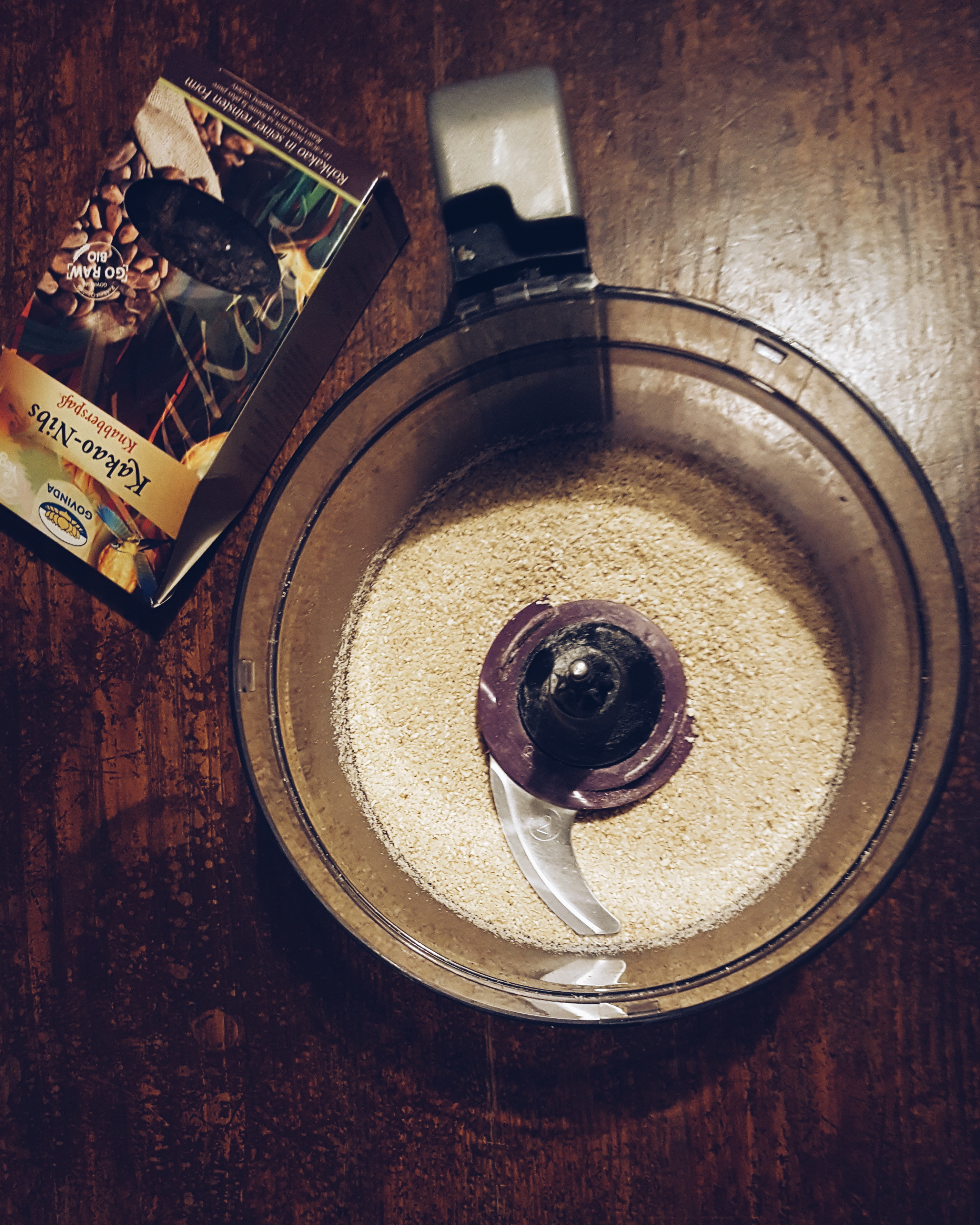 Für die Zubereitung einfach die Nüsse und das Mehl in die Küchenmaschine geben und solange zerkleinern lassen bis quasi Mehl daraus geworden ist.